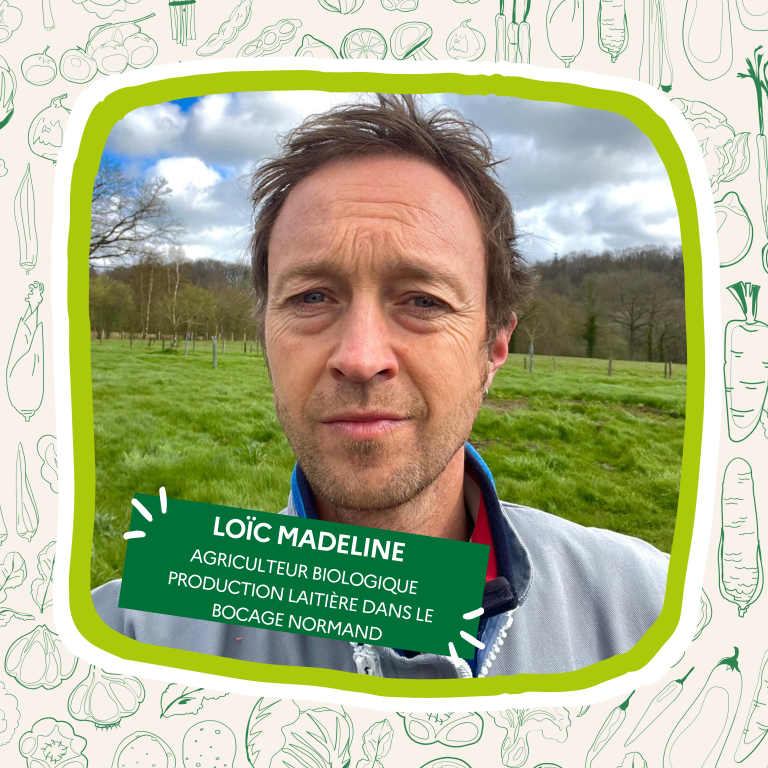 Loïc Madeline, c’est un physique de rocker et une activité intense de représentation politique du bio. Ingénieur qui s’éloigne de la ferme familiale pour mieux revenir à la terre à 35 ans, il passera l’exploitation en bio. 7 ans plus tard, interpellé par le fonctionnement de la PAC, il s’engagera pour porter la parole bio.