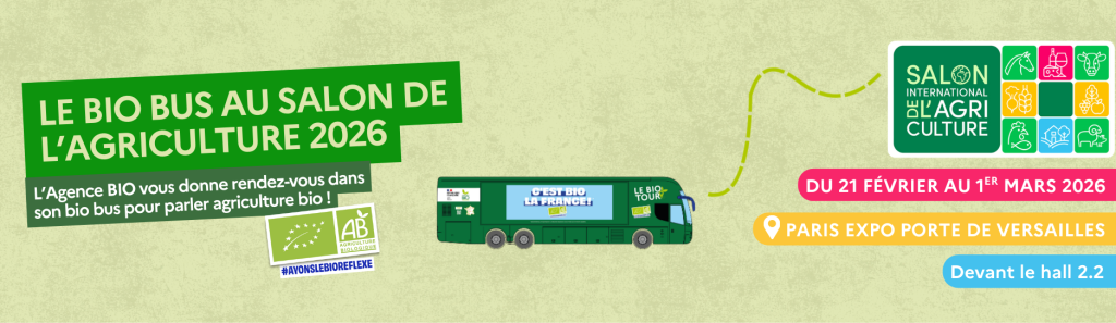 Restez connectés pour avoir plus de détails dans les jours à venir et rendez-vous au SIA 2026 pour rencontrer l’équipe de l’Agence BIO dans le bio bus !